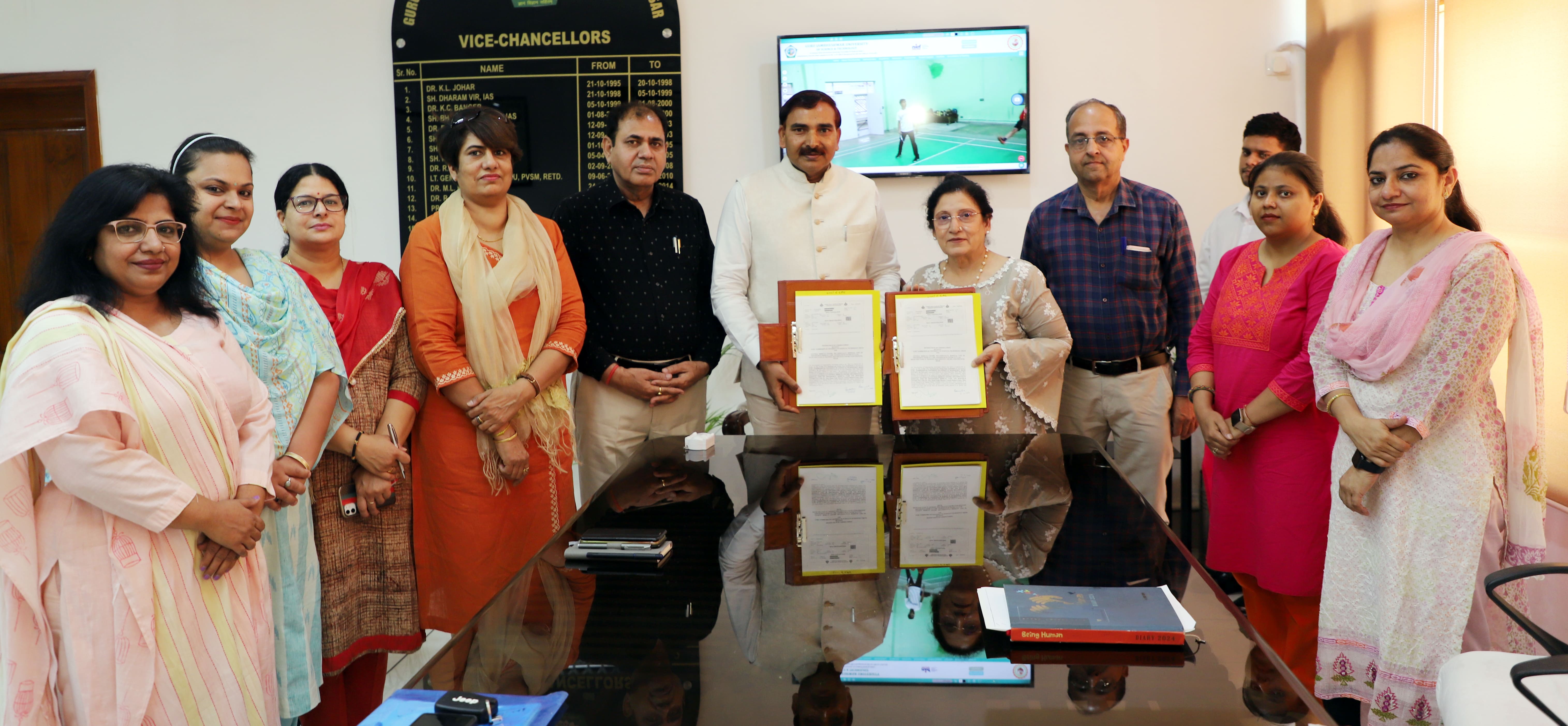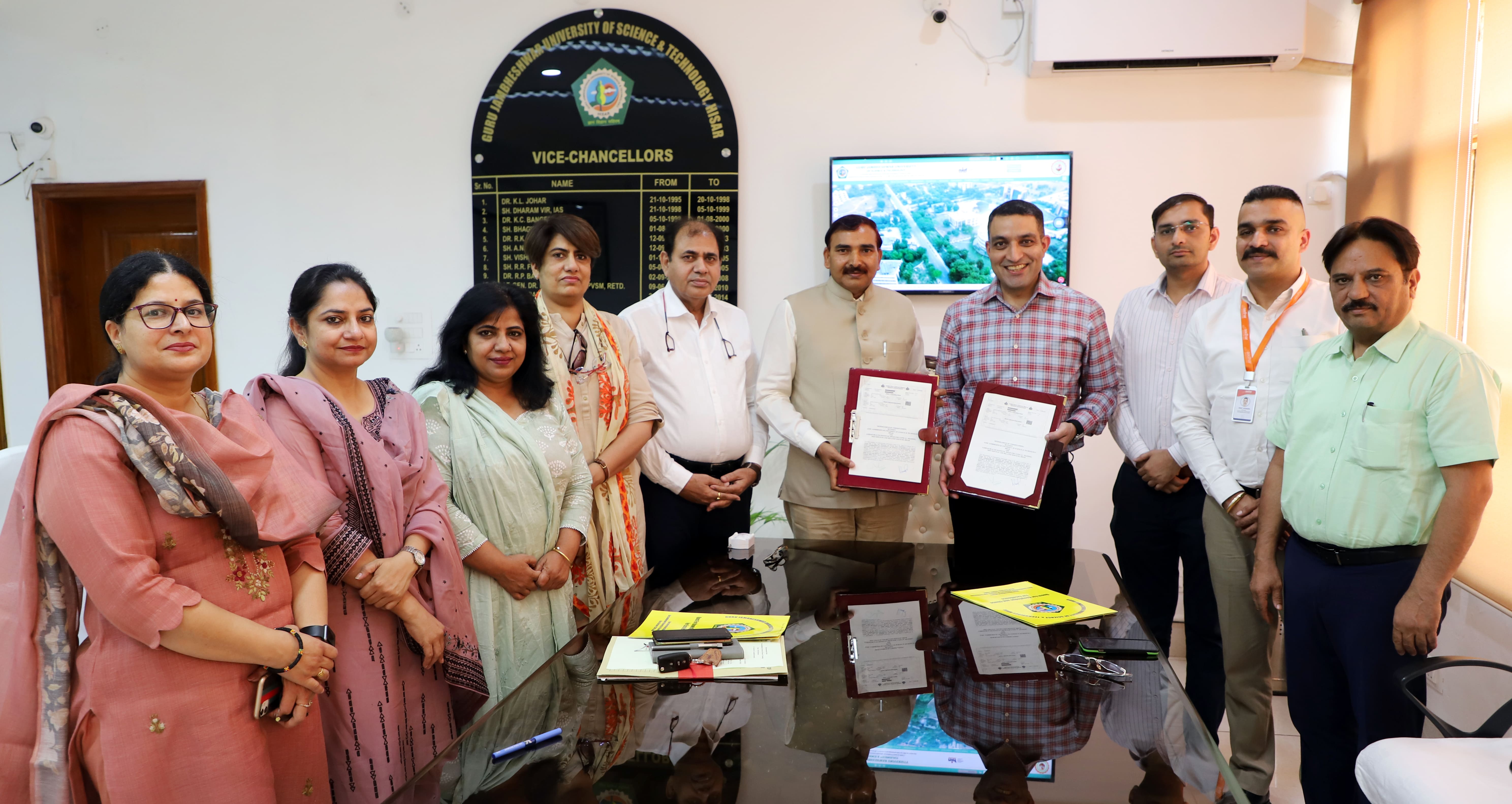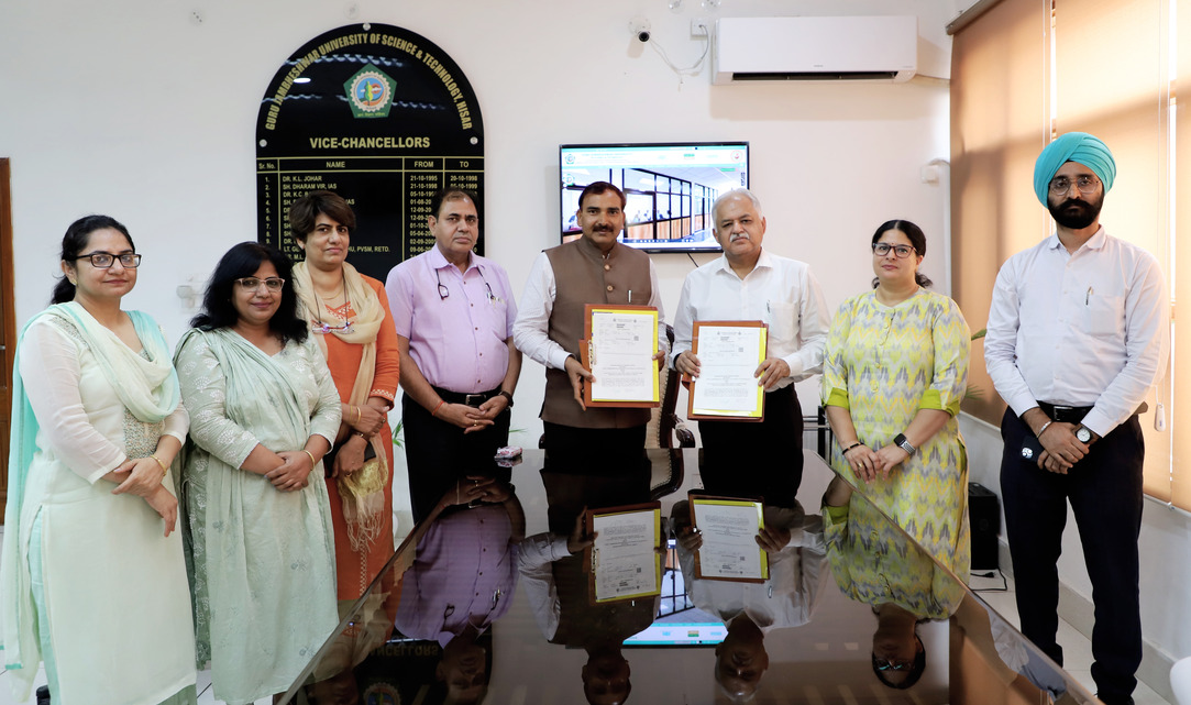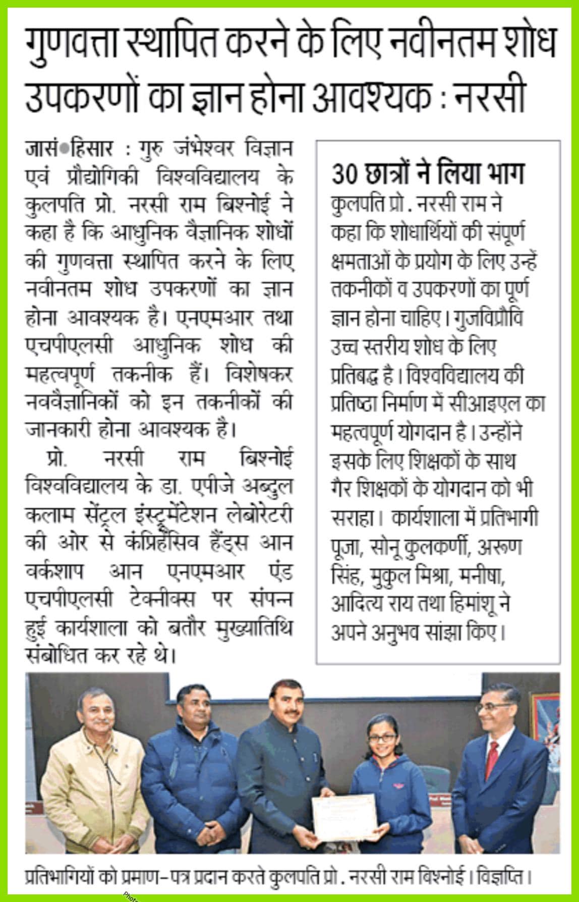 हिसार में गुरु जंभेश्वर विश्वविद्यालय के कुलपति प्रोफेसर नरसीराम बिश्नोई प्रेस वार्ता करते हुए